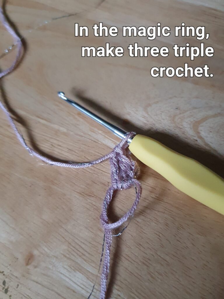 In the magic ring, make three triple crochet.